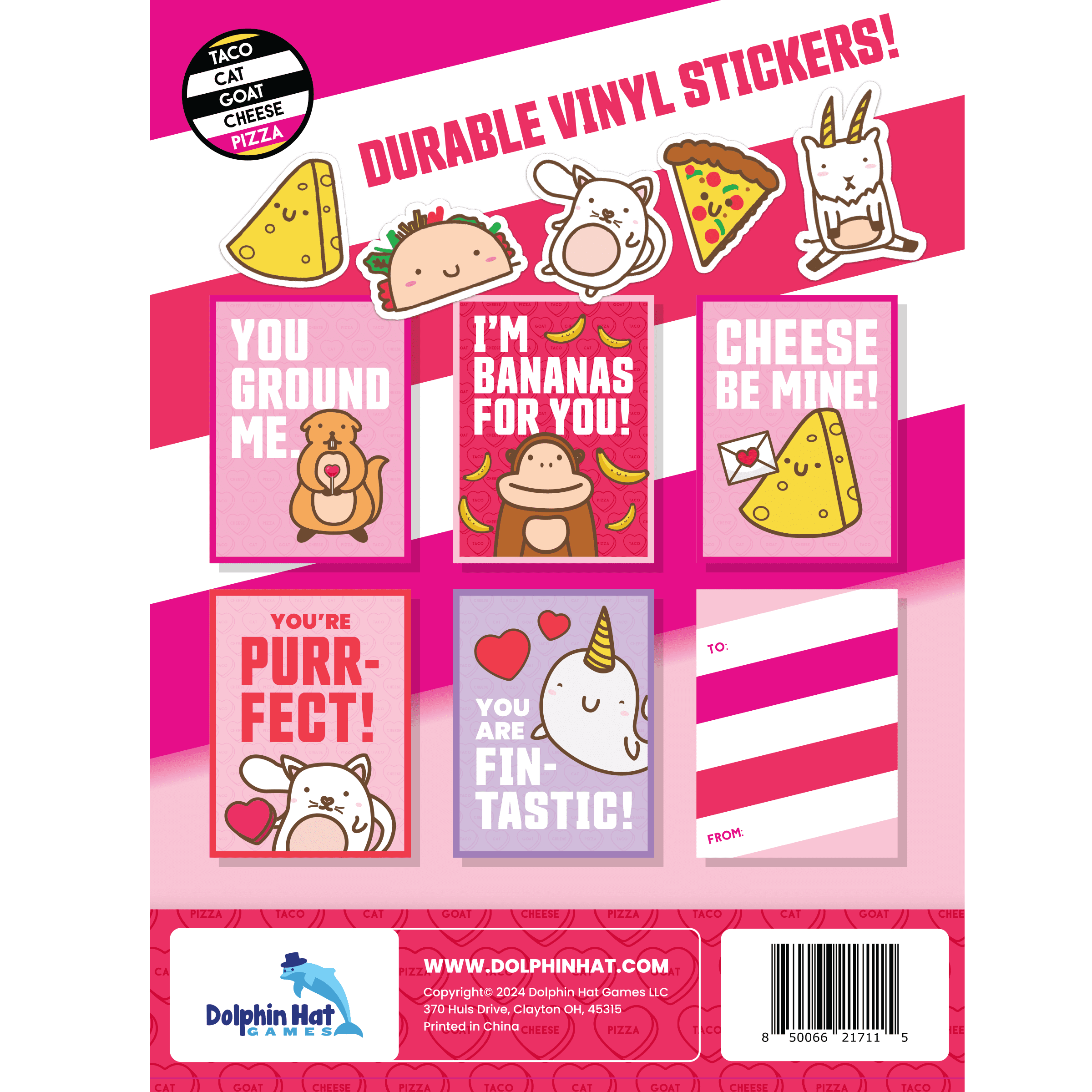 - EIGHT ADORABLE DESIGNS: all of your favorite Taco Cat Goat Cheese Pizza characters get their own cards in this fun set!