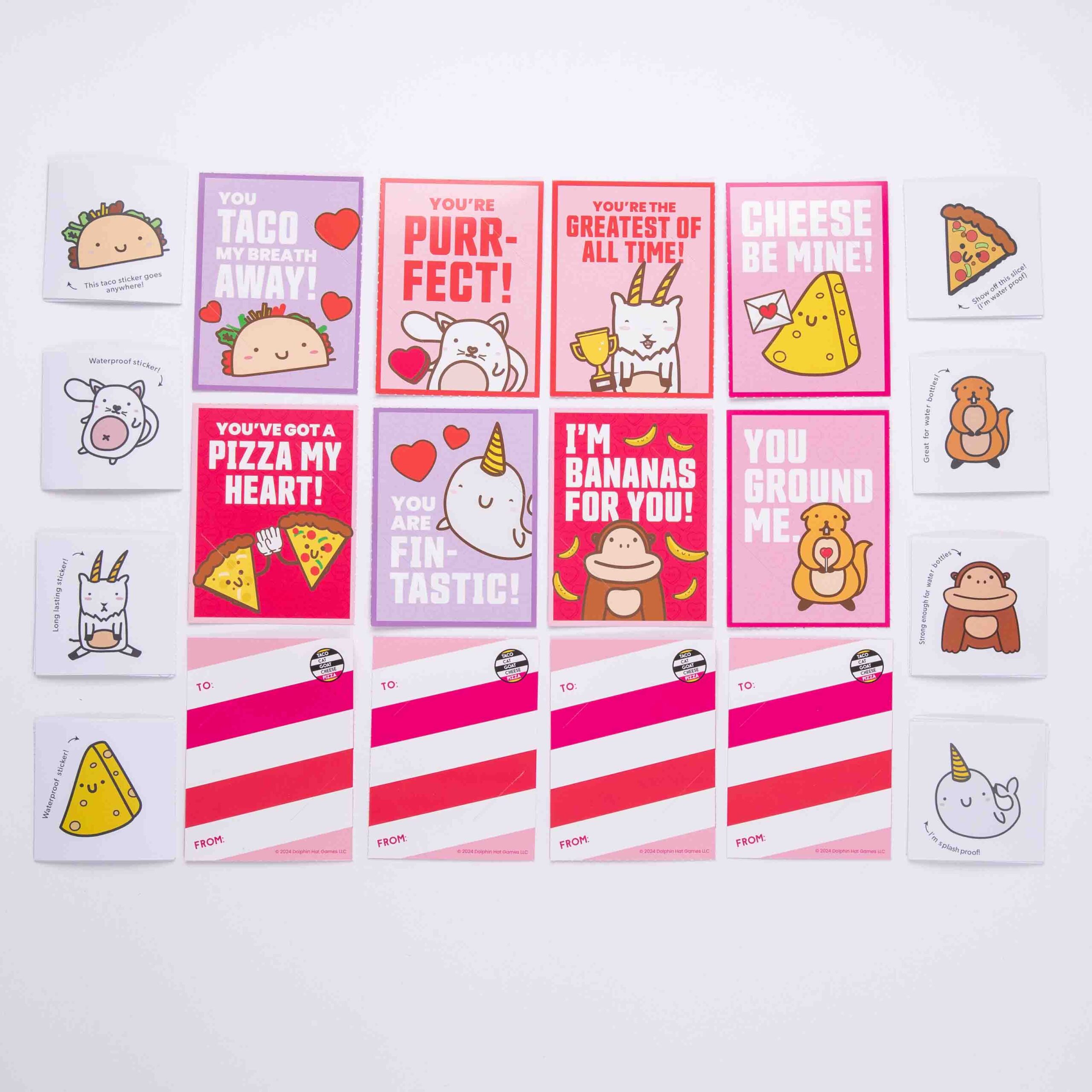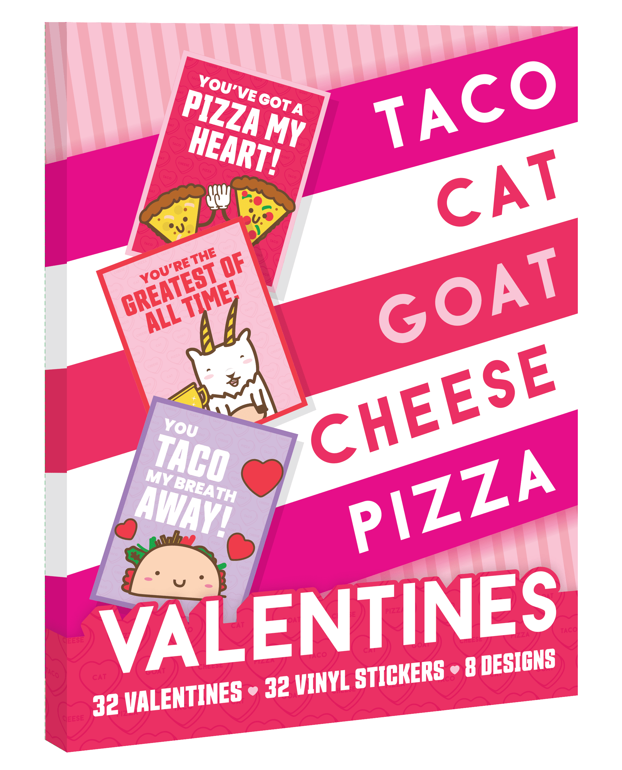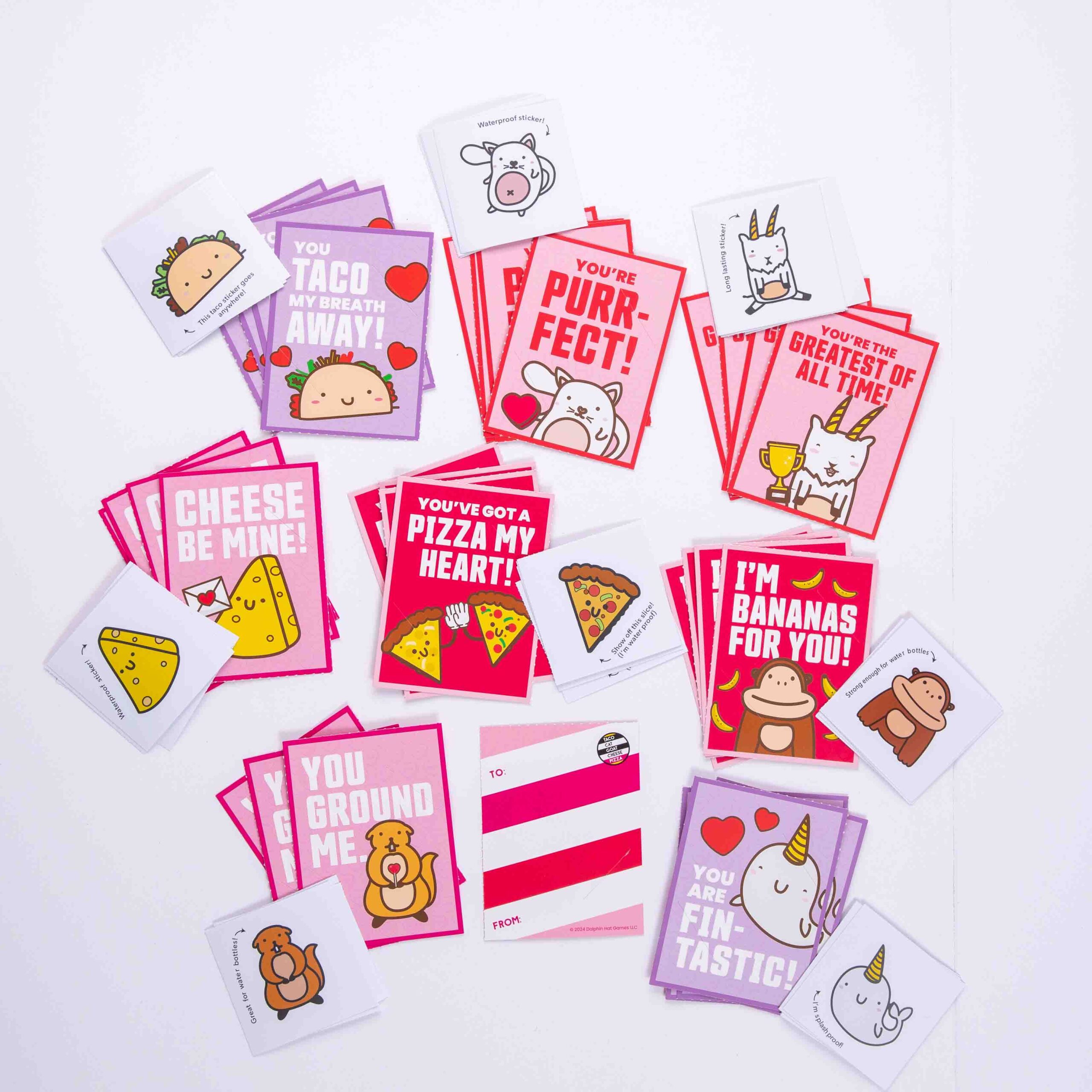 - PERFECT FOR PARTIES: Be the hit of the class party with these NEW Taco Cat Goat Cheese Pizza Valentine’s Day Cards!